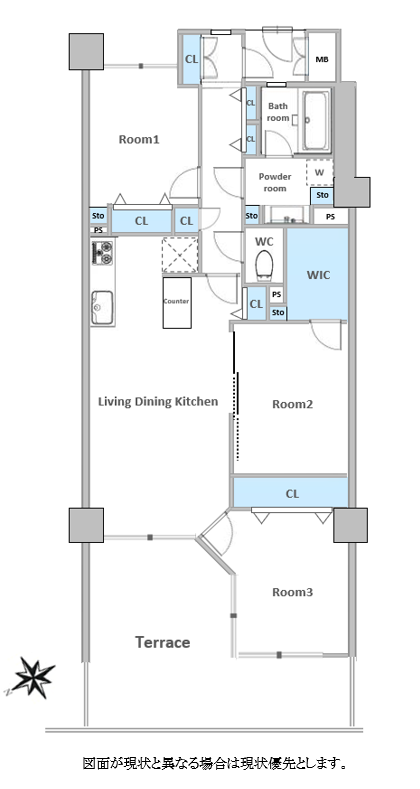 3LDK+WIC 専用テラス付き!